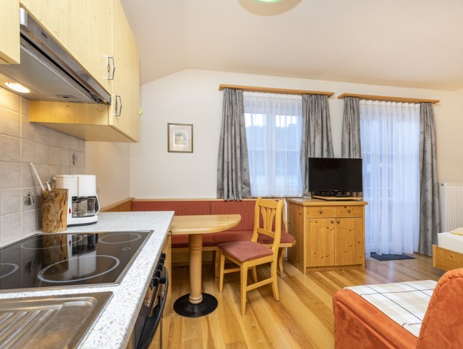 Unsere gemütlich eingerichteten Appartements für 2-5 Personen sind mit Einbauküche, Mikrowelle, Geschirrspüler, E-Herd mit Backrohr, Geschirr, Kühlschrank, Kaffemaschine und Wasserkocher, 1-2 Schlafzimmern, 1-2 Duschen, WC, Kabel TV und WLAN (kostenlos) ausgestattet. Sie können aus 4 unterschiedlichen Typen wählen: